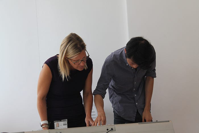 We had the list ready. Each group for each song had a recording time, with the schedule laid out in 30-minute time slots, one for each AHRC site: the “Zulu P” group recording “I Love the Summer” at New York League, the “My Family” song at Redfield, “Praise be to God” with the choir group, and three songs individualized for each person at Norfolk. We had the rooms all ready to go — a meeting space, a room for recording set up with our Zoom H4N recording device and piano keyboard, and some extra spaces ready for groups who wanted to practice more.
