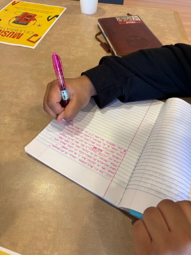 lyrics and ideas for future song ideas which was great to see that this project has allowed them to continue to explore their musical creativity they already have. I am excited for them to continue growing as