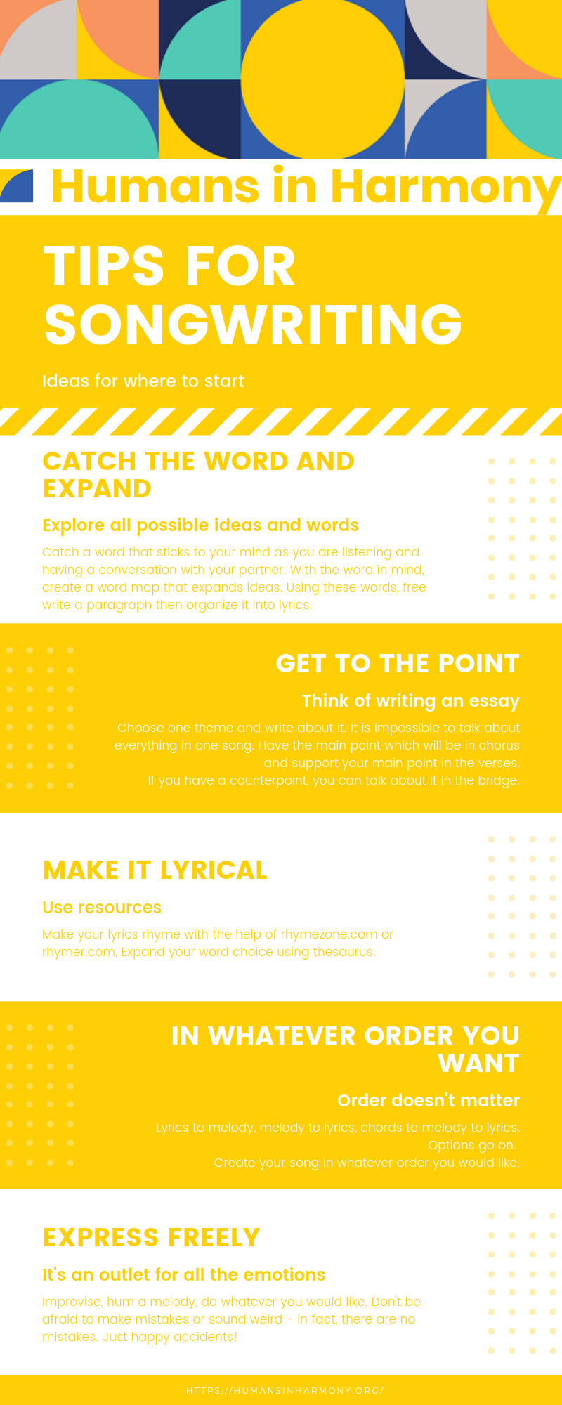 At Humans in Harmony, we believe that everyone is a songwriter and every person has a story to tell. These resources are here for anyone who would like to engage with what we do: whether through starting a chapter program, organizing workshops with others, or engaging in your own songwriting project.